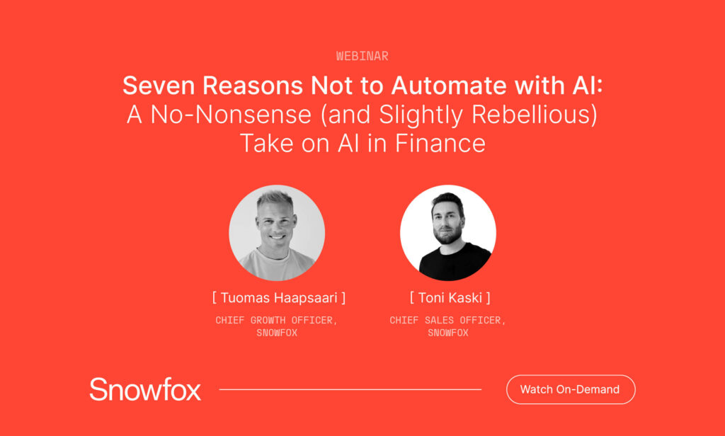 Watch Webinar Replay Seven Reasons Not to Automate with AI: A No-Nonsense (and Slightly Rebellious) Take on AI in Finance Live Virtual Session · 45 minutes + Q&A Watch Webinar Webinar Hosts: Toni Kaski Chief Sales Officer Tuomas Haapsaari Chief Growth Officer What is AP automation, and how does it work? Everyone’s talking about how […]